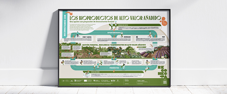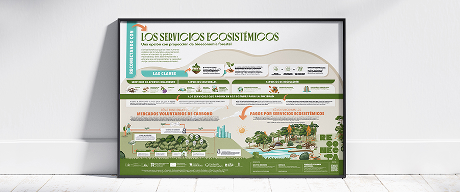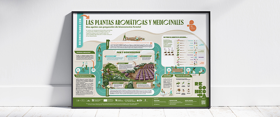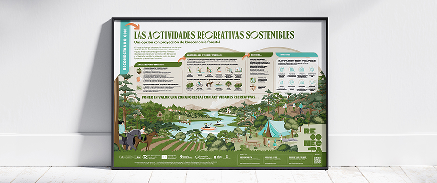 Para acercar a los propietarios tanto las necesidades como para fomentar el emprendimiento respetuoso se han desarrollado 13 Infografías explicativas en las que se desgranan todas las posibilidades que ofrece los terrenos. Desde la apicultura y las plantas aromáticas, a la producción de madera o productos no maderables… pasando por las actividades recreativas y los servicios ecosistémicos, todo un abanico de posibilidades que se abren y desglosan.