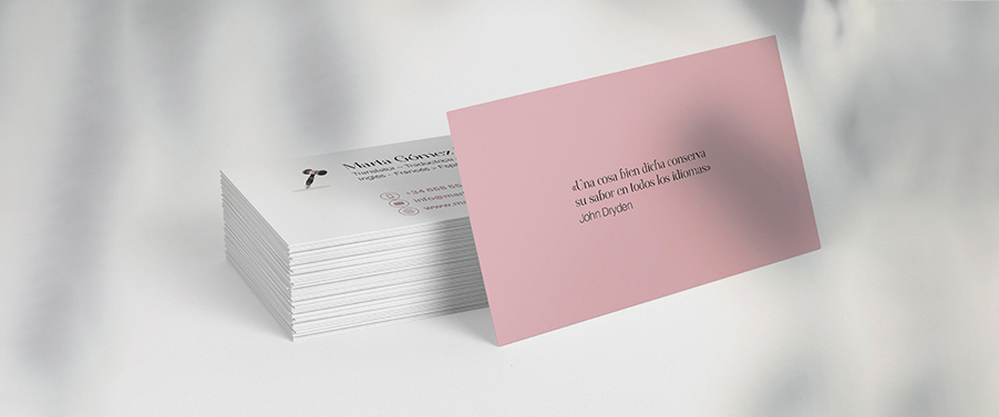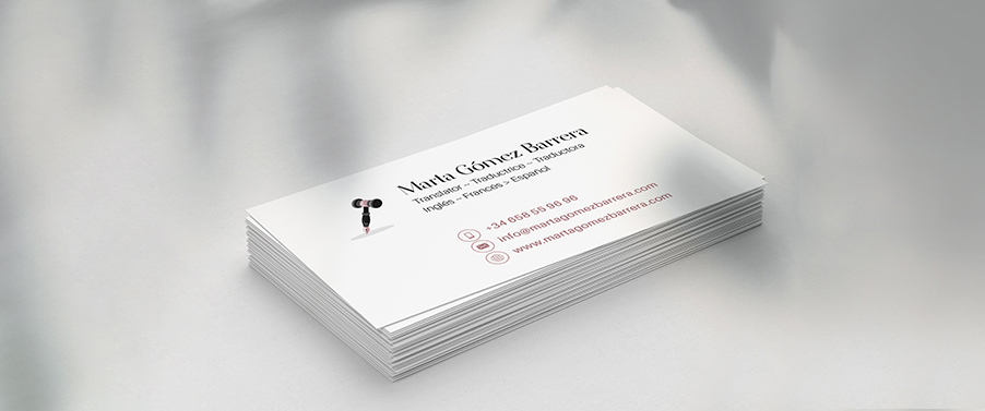 Desarrollo de tarjetas corporativas para Marta Gómez Barrera, apasionada por la traducción y la escritura.